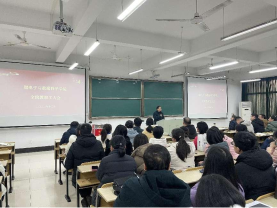 12月28日下午,sunbet在数理楼403室召开全院教职工大会,公司全体教职工参加会议,会议由公司党委书记汪春胜主持。