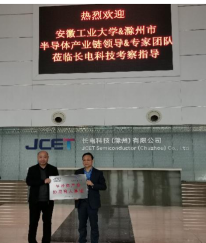 下午,公司一行先后参观了长电科技(滁州)有限公司、立讯精密工业(滁州)有限公司、滁州惠科光电科技有限公司,并且和各企业的负责人进行交流座谈,向企业介绍公司专业设置和人才培养特点以及科研方向和团队,听取企业在专业人才和科技攻关方面的需求。公司在长电科技(滁州)有限公司举行了“半导体产业协同育人基地”授牌仪式。