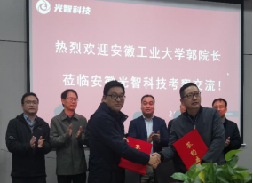 上午,在滁州市经信局和琅琊区相关部门领导的陪同下,公司一行来到安徽光智科技有限公司参观企业的工艺产线和检测实验室,听取企业产品研发和相关的技术积累。在随后的座谈会上,光智科技总经理刘留介绍了公司的发展历程、行业优势、产品规划及人才需求等情况。郭宏介绍了公司及公司的发展概况,希望双方能结合各自所长,在红外光学材料、镜头设计、激光晶体材料及钙钛矿太阳能薄膜电池技术等领域深入合作,推动技术研发及成果落地,同时在员工培养、实习实践和就业方面密切合作,实现高质量产教融合。双方还举行了“半导体产业协同育人基地”签约及授牌仪式,并商定尽快制定实施方案,共同推进具体工作落实到位。