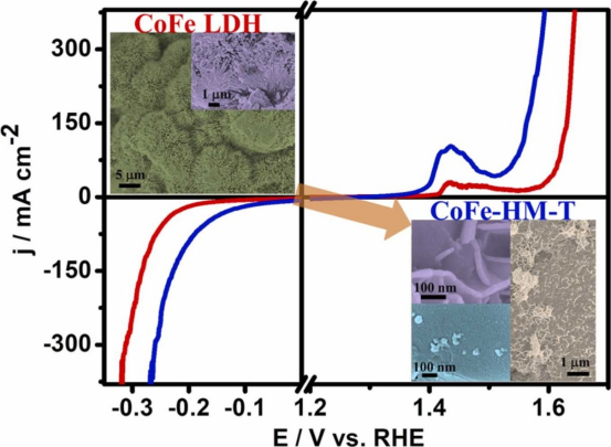 同时,团队开展了新型析氢电极的设计工作。通过硫脲-NaOH的处理方法在CoFeAl LDH上制备了由金属硫化物组成的多孔结构(CoFeAl-T-NaOH)。实验表明,CoFeAl-T-NaOH电催化剂具有优异的OER、HER、OWS和稳定性。研究发现,多孔异质结构促进了反应物的运输和产物的扩散,金属硫化物异质结促进了电荷迁移。相关成果发表在中科院TOP期刊Nanoscale (IF:8.3)。邓小龙副教授为第一和通讯作者,曹加锋副教授和济南大学黄金昭教授为论文共同通讯作者。