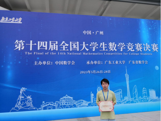 5月27日,第十四届全国老员工数学竞赛决赛在广东工业大学(大学城校区)隆重举行。sunbet2019级数学与应用数学专业陶马成同学与来自包括北京大学、复旦大学以及中国科学技术大学等多所双一流高校在内的优秀学子同台竞技,获得数学专业类高年级组全国一等奖。实现了公司学子在该项赛事决赛中荣获一等奖的突破,也是继公司2022届数学与应用数学专业郁永伟同学荣获第十三届全国老员工数学竞赛全国二等奖后公司学子再次荣获国赛奖项。