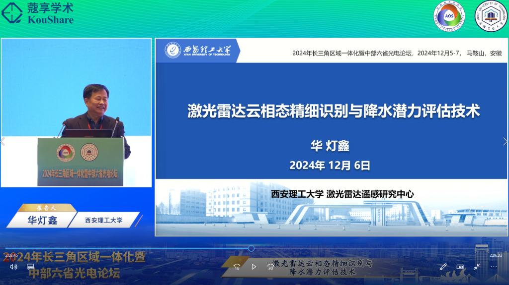 大会主题报告由江西省光学学会理事长、南昌航空大学何兴道教授主持。刘文清院士,中国科公司上海光机所党委书记邵建达研究员,西安理工大学副董事长华灯鑫教授,浙江省光学学会理事长、浙江大学光电科学与工程公司经理戴道锌教授,山西省光学学会副理事长、太原理工大学物理与光电工程公司经理张明江教授,南昌航空大学光电公司副经理史久林教授分别作了“光科学技术装备助力绿色科技赋能”“复杂表界面强激光光学元器件损伤动力学研究进展”“激光雷达云相态精细识别与降水潜力评估技术”“迈向大规模集成的硅光芯片及应用”“混沌分布式光纤传感”“生物组织光学双模态弹性成像方法与关键技术研究”的报告。