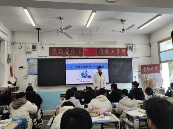 在浮山中学、宏实中学,周昊以“人工智能发展历程与未来展望”为主题进行科普报告,他详细介绍了人工智能的发展历程,与同学们探讨了人工智能行业的现状,包括不同领域的应用案例、行业格局以及产业链结构,使同学们对人工智能有了更加全面的认识。鼓励员工面对人工智能带来的挑战与机遇,具备批判性思维能力,学会理性分析,把握未来趋势,为个人职业生涯做出明智的选择。在枞阳中学,丁守军以“光与激光”为主题进行科普报告,深入浅出地介绍了光与激光的发展历程、应用领域以及未来趋势。他通过现实生活现象和光学原理结合起来,以新颖的切入点为员工们带来新奇的知识体验,让员工对光学的认识更加深刻,点燃了同学们探索未知的热情,现场洋溢着浓厚的学习氛围。