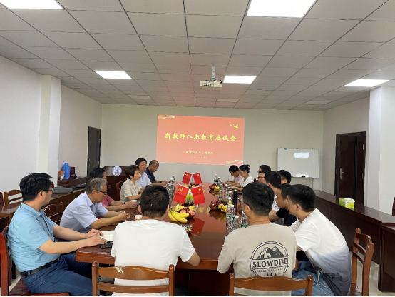在第38个教师节到来之际,9月8日下午,数理科学与工程公司召开了新教师入职教育座谈会。公司领导班子、近两年入职的新教师、工会主席参加了座谈会,会议特别邀请了省教学名师曹天守、校督导组专家施法鹏两位老教师给新教师做入职教育,会议由党委书记张清主持。